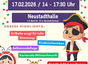 Eine gemeinsame Veranstaltung des ASB-Mehrgenerationenhaus und der Neustadthalle mit Kinderschminken, Ballonmodellage, Süße Leckerein und Snacks, Karnevals- Mitmachmusik...DJ.